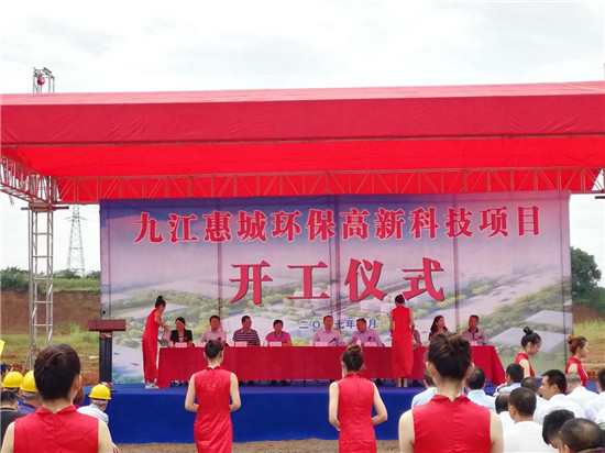 9月29日上午十點十八分,九江惠城環??萍加邢薰鹃_工典禮在瑞昌碼頭工業城隆重舉行。