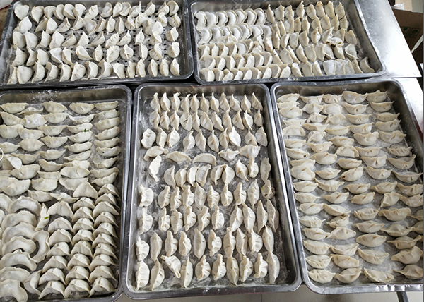 家齊心協力,用心包出的餃子如一排排元寶華麗亮相。每一個餃子都代表對員工的一份關愛,一份祝福。