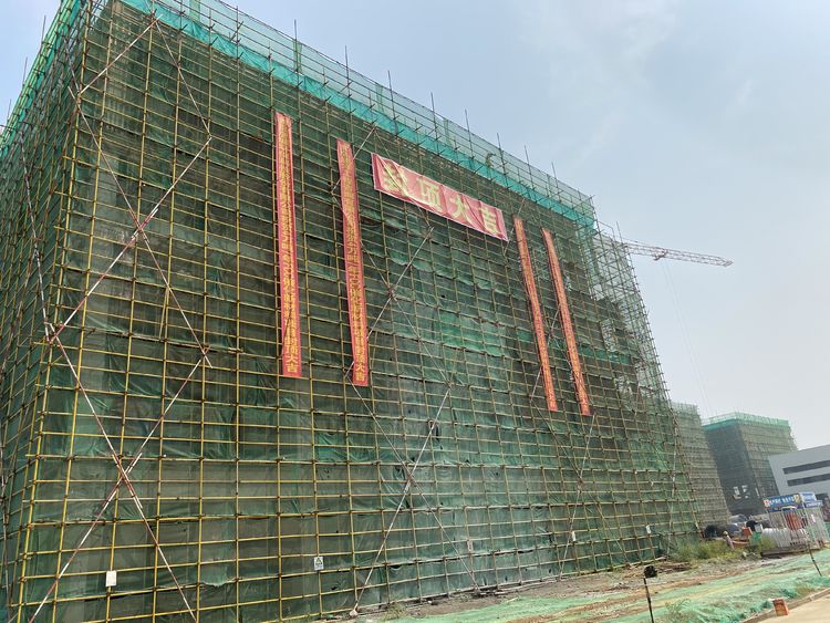 9時(shí)58分,封頂吉時(shí),禮炮齊鳴。在場所有人都滿懷激動的心情鼓起掌來,聳立的廠房被一條條紅色祝福標(biāo)語裝點(diǎn)得格外喜慶。